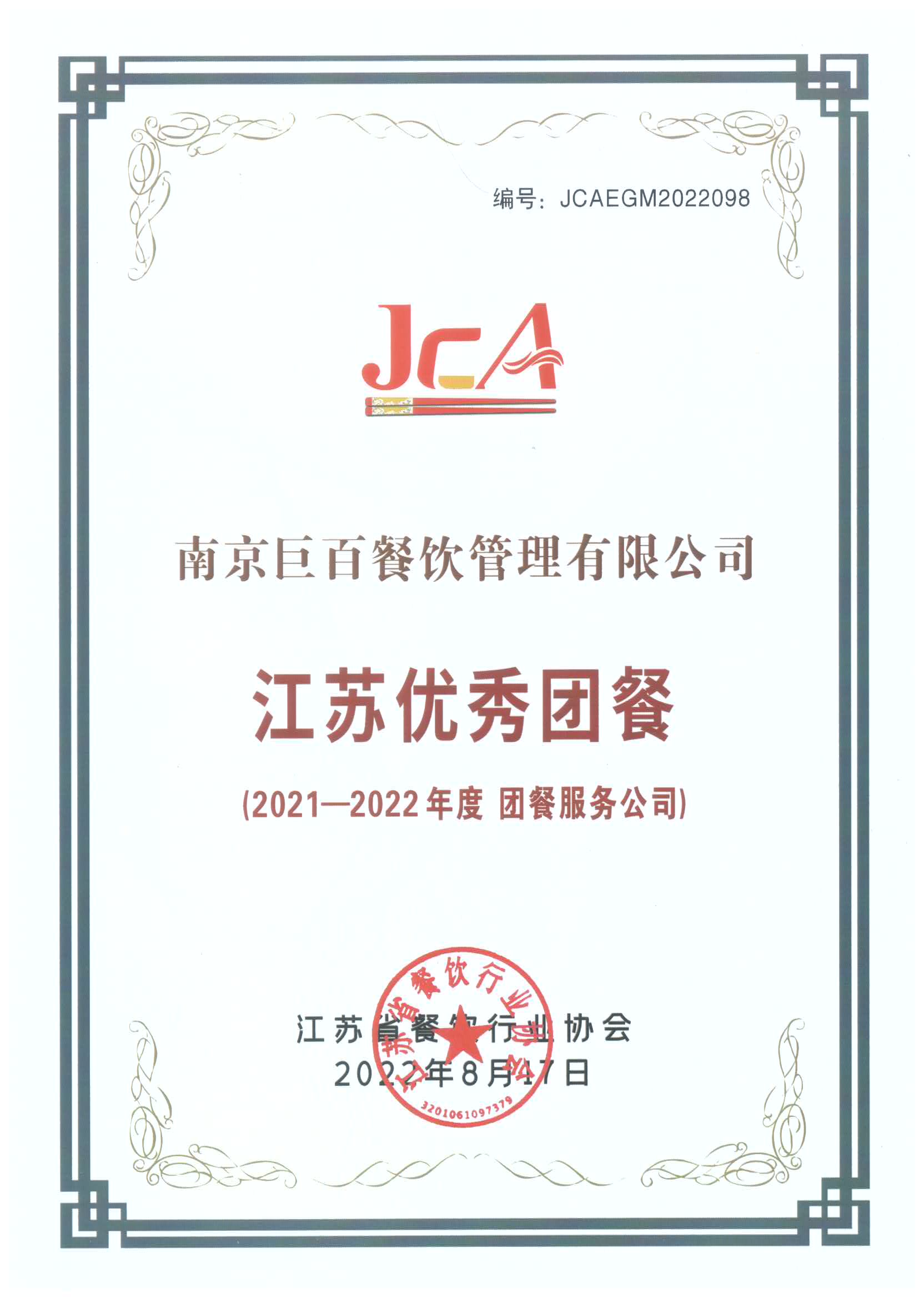 2021-2022江蘇優(yōu)秀團餐